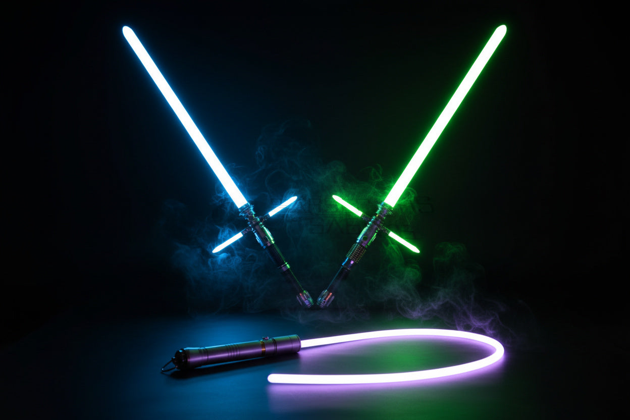 Every saber ships combat-ready with: the hilt, a polycarbonate blade (default 32"), blade plug, charging cable, and allen key. Our Xeno3 cores come pre-loaded with 34+ sound fonts.